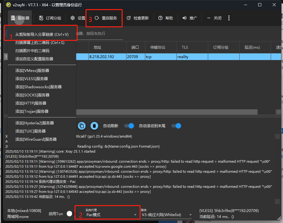完成上述所有操作后,为使新配置生效,需要重启服务。在 “v2rayN.exe” 程序中,查找 “重启服务” 或类似功能按钮,点击该按钮执行重启操作。重启过程可能需要短暂等待,待服务重启完成后,您的VPN 软件即可正常使用。