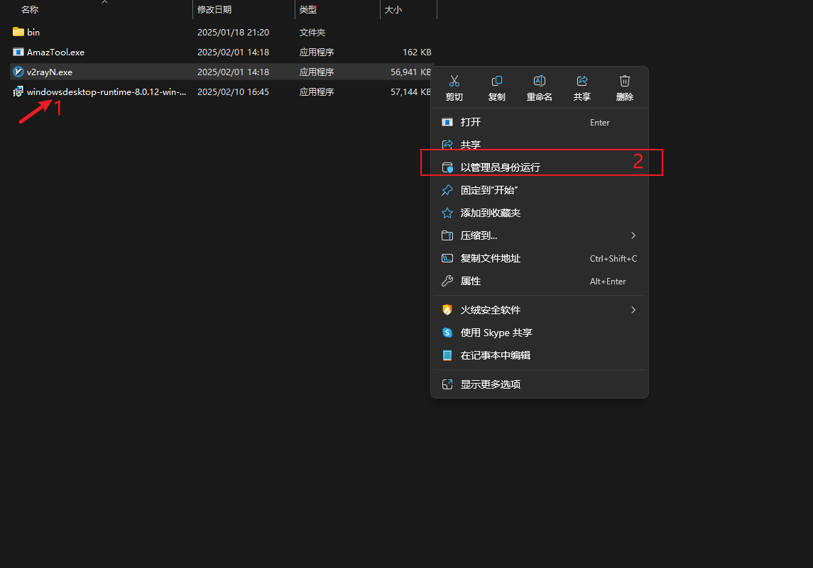 继续在文件夹中找到 “v2rayN.exe” 文件。右键点击 “v2rayN.exe”,在弹出的菜单中选择 “以管理员身份运行”。若系统弹出用户账户控制提示,请点击 “是” 以确认运行,这一步骤有助于软件获取必要的系统权限,保证后续功能正常使用。