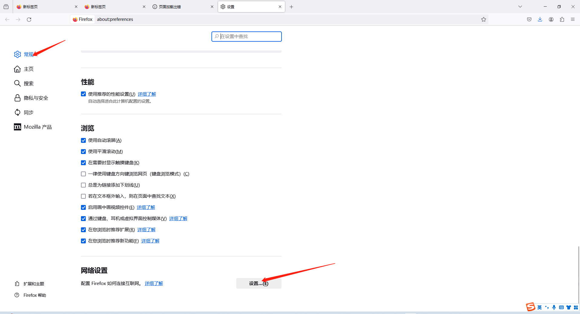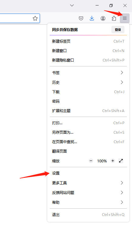 1.打开火狐浏览器设置