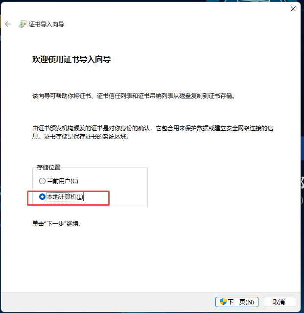 将文件复制到本地计算机双击导入证书(X:\软件\17-远程控制)